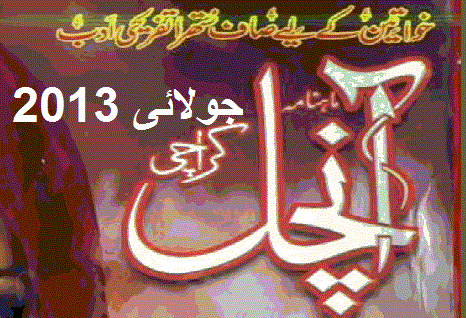 The July 2013 issue of Aanchal Digest brings readers an exciting mix of serialized novels, short stories, poetry, and literary contributions. Notable authors include Samira Sharif, Aqra Saghir Ahmed, Talat Aghaz, and Hafiz Shabbir Ahmad.