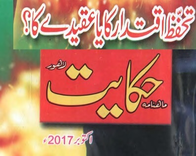 Hikayat Magazine October 2017Read Online free Latest Urdu Digest Hikayat Magazine October 2017. Point of View Aihtsab Sab Ka (Accountability for All). Do More Ka Zamana Gya. Soldier Nama, Pasheeman, Apni Hi Qaum Key Sauda Gar, Maan Muhabbat aur Maut, Qasam, Kala Jadu aur Qatal. Beech Ki Deewar, Nidamat. Wada Muaf Gawah, Diyar e Haram Ko Chaley. Pachal Piri. Allow Last Episodes. Manzilain AUr Rastey. Piyar Pardesi aur Peer. Doodh Haram, Zood e Pasheman. Maharaja. Suna Tum Ney?. Baanjh. Sehat Man Batuni. Choti Choti Batain. Qila Shekhu Pura. Izhar e Khayal. Mujhy Kiun Nikala. Poetry and many more.