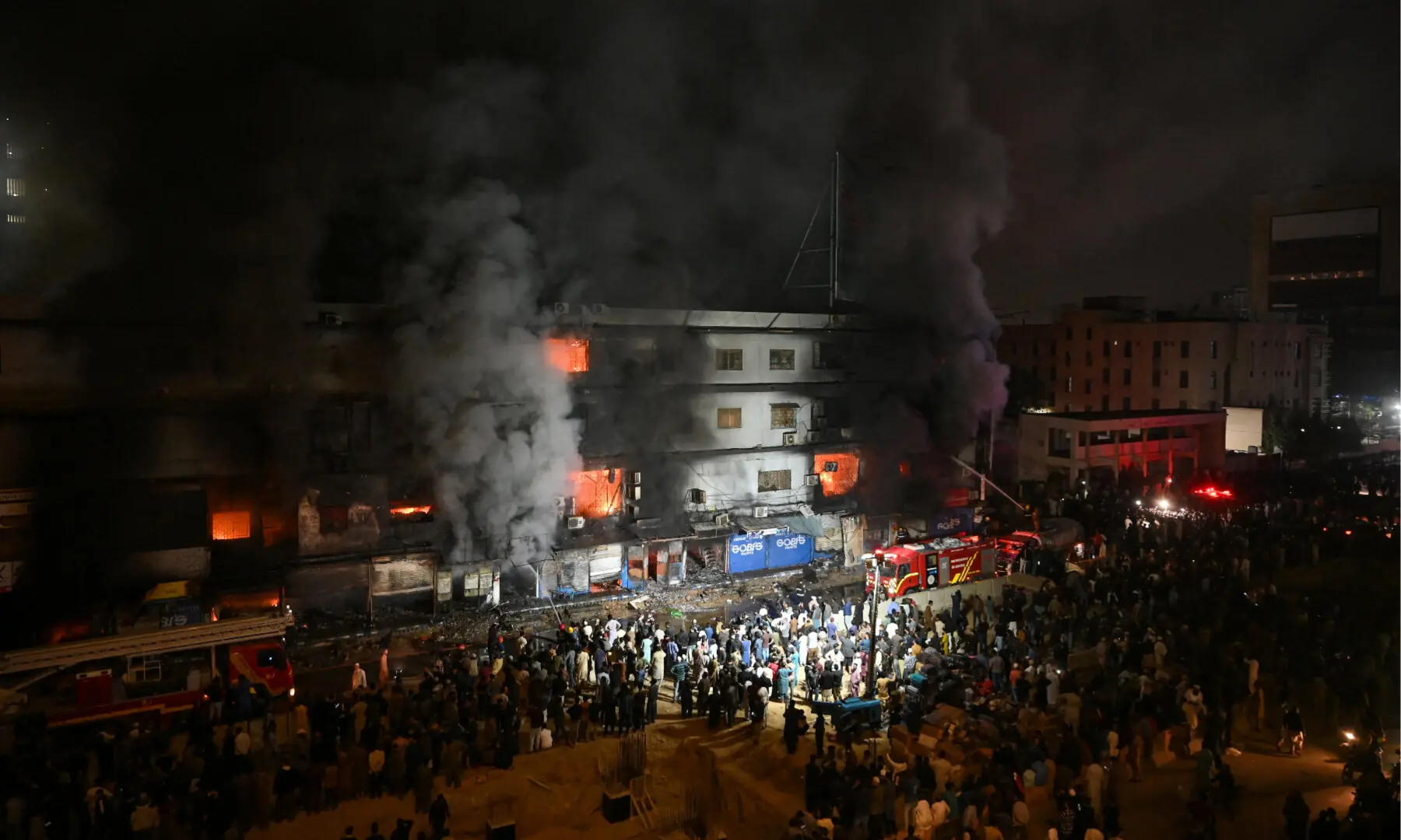 Karachi’s Gul Plaza fire raged over 24 hours, leaving 14 dead and many missing as firefighters battled flames on MA Jinnah Road.